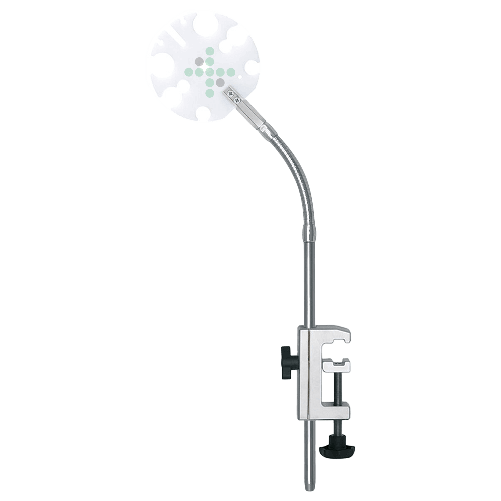 Anesteziologický držák s univerzální svorkou a držákem na hadičku, nastavitelný na 38 cm.