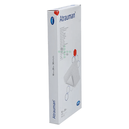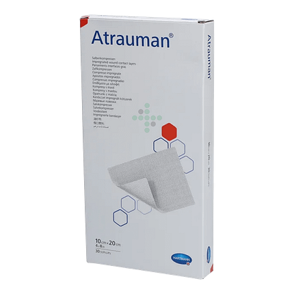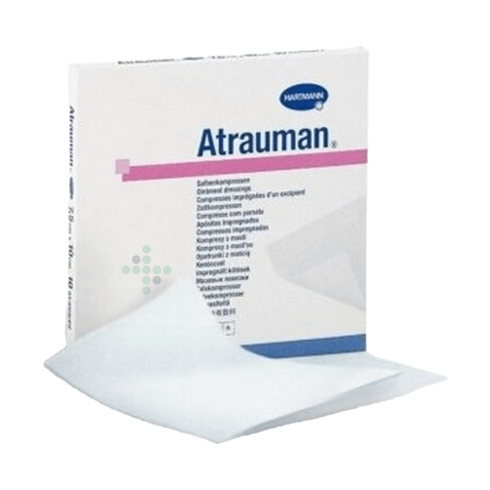 Atrauman 5 x 5 cm, 10 ks - mastný tyl na rány, je sterilní hydrofobní polyesterový tyl s drobnými oky pro moderní hojení ran. Podporuje granulaci, ale velikost jednotlivých ok zabraňuje přerůstání nově vzniklé tkáně - eliminuje tak vznik hypergranulace. Výrobek je utkán z hladkých vláken, která se nelepí na spodinu rány. Je impregnován neutrální lanolinovou mastí, Atrauman tak umožňuje šetrné převazování rány.