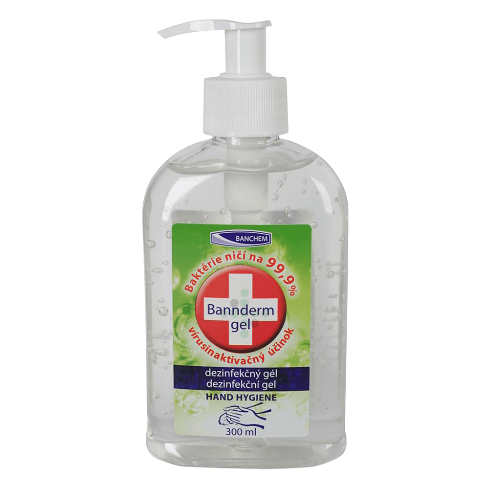 BANNDERM dezinfekční gel na ruce 300 ml. 99,9 % bakterií. Gelový přípravek na bázi alkoholu k hygienické dezinfekci rukou.