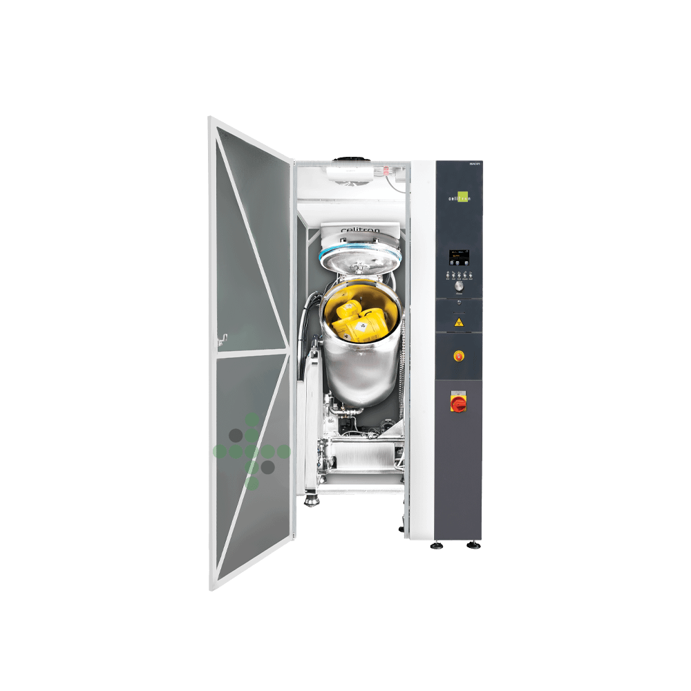 Celý proces je plně automatický, včetně otevírání a zavírání dvířek, vyklápění a otáčení kontejneru, jakož i drcení a sterilizace. Celková doba cyklu je 25-35 minut a lze zpracovat 50-75 kg odpadu.
