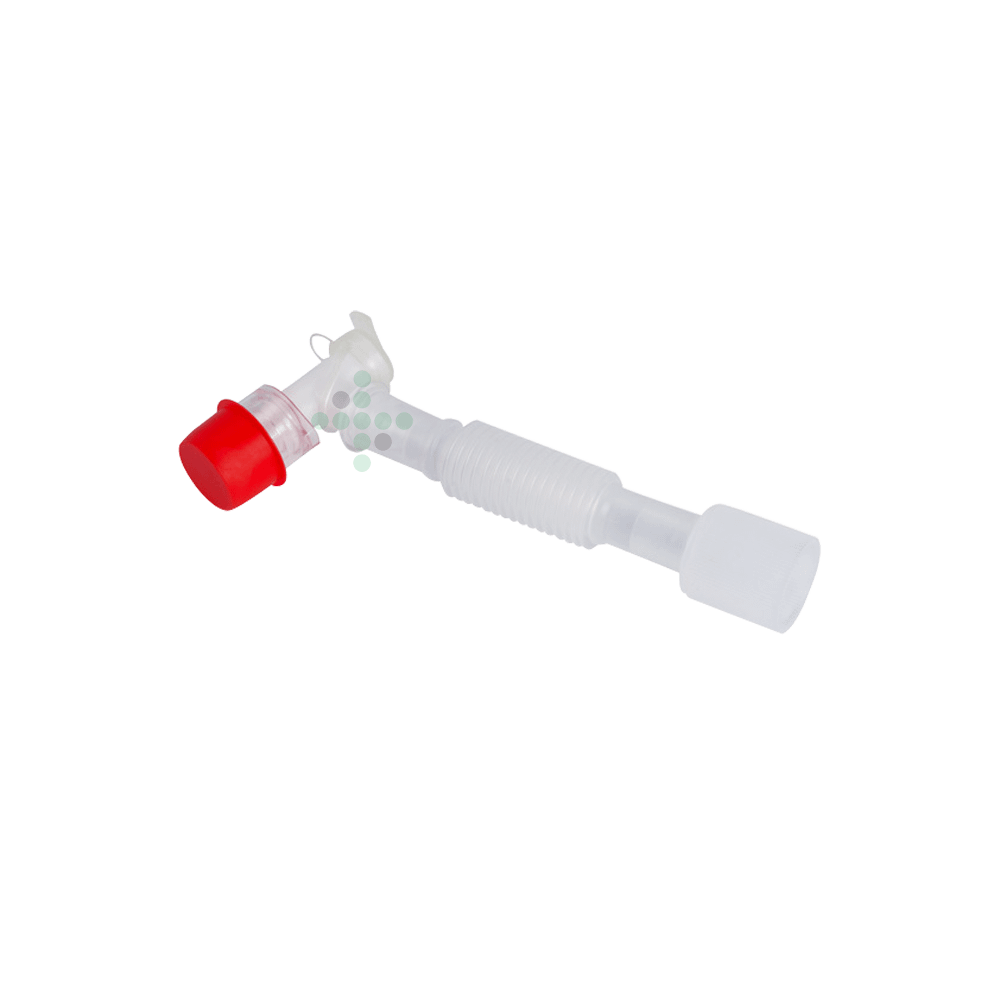 Jednorázový dýchací konektor pro připojení systému ventilačních trubic k pacientovi. Průhledná hadička umožňuje kompletní monitorování systému.