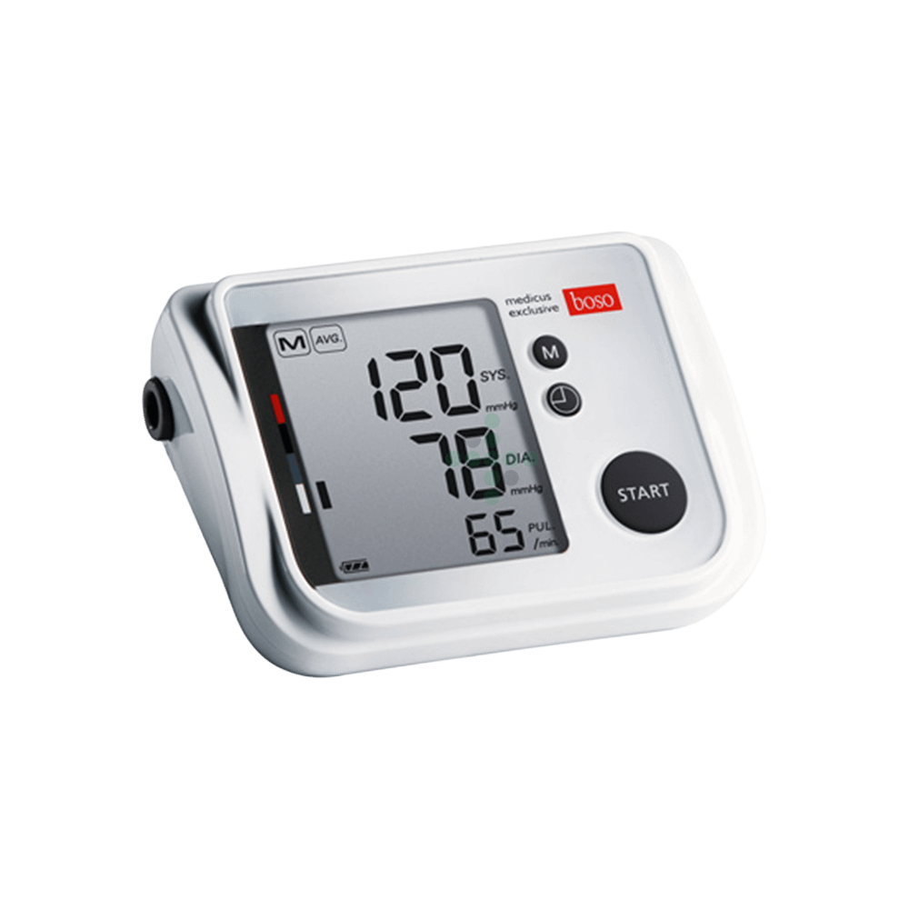 Digitální tlakoměr BOSO MEDICUS Exclusive měří krevní tlak na paži oscilometrickou metodou. Díky funkci „triple-check “ automaticky provede tři měření po 60 sekundách a zobrazí jejich průměr.
