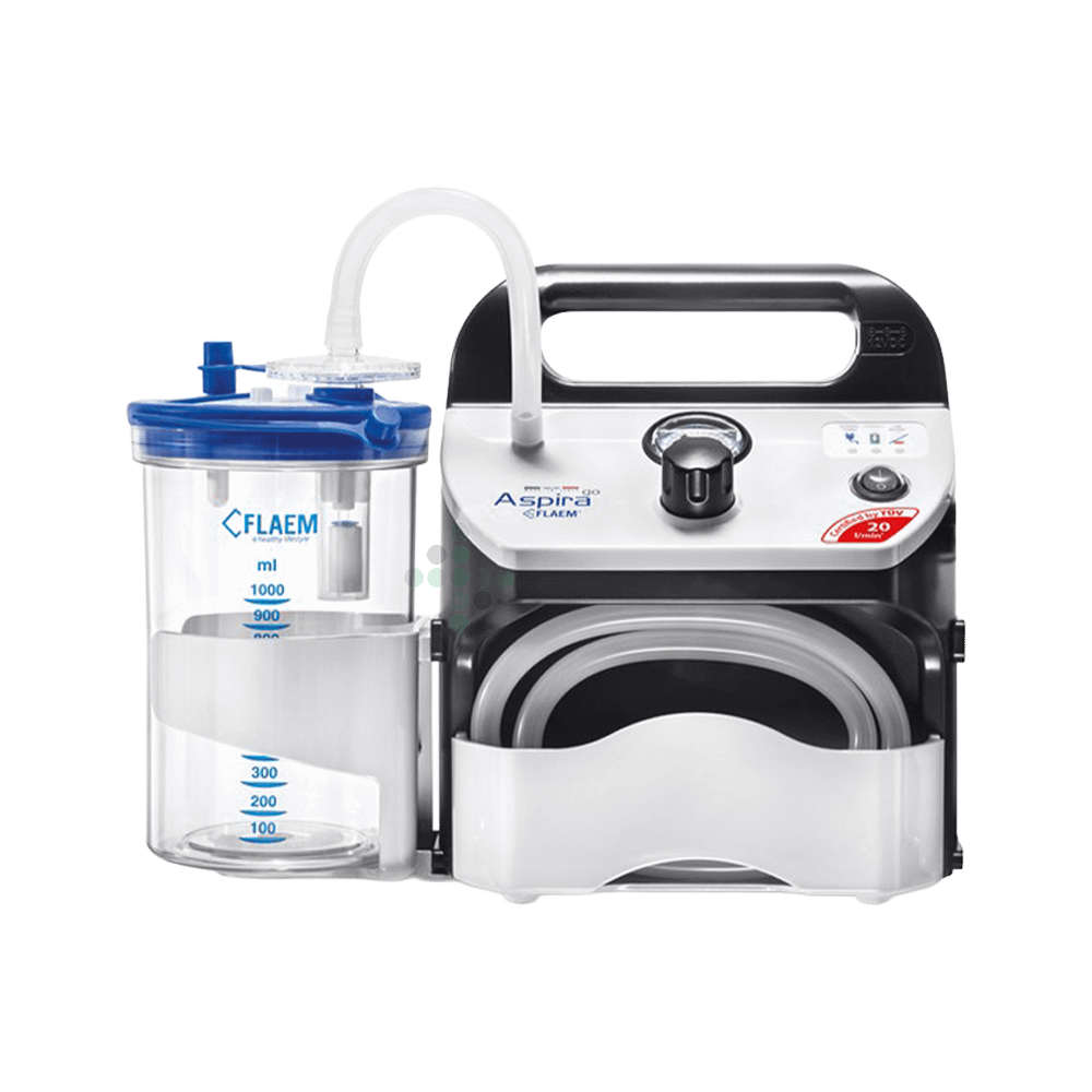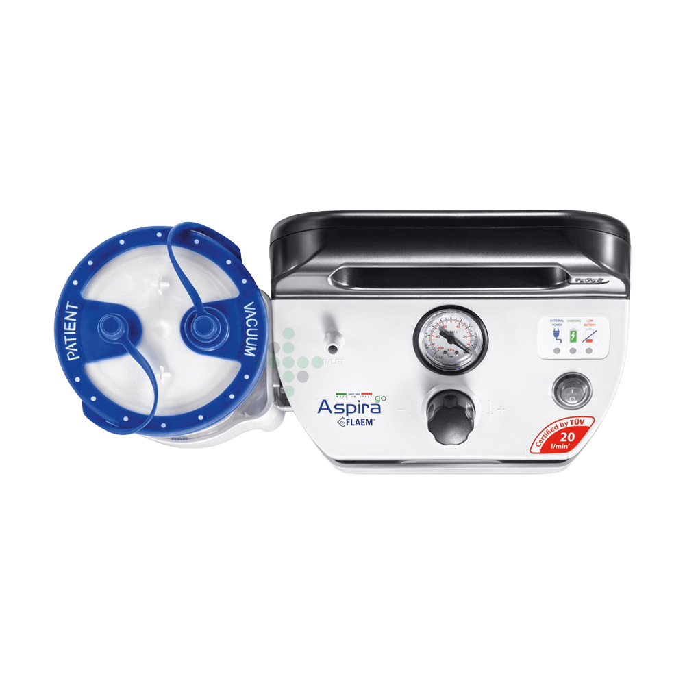 FLAEM Aspira GO 20 je kompaktní a lehký přenosný extraktor na baterie určený pro nemocnice, ambulance, terénní nebo domácí použití. Díky výkonným a snadno vyměnitelným lithiovým bateriím je přístroj zcela mobilní a připravený k okamžitému nasazení.