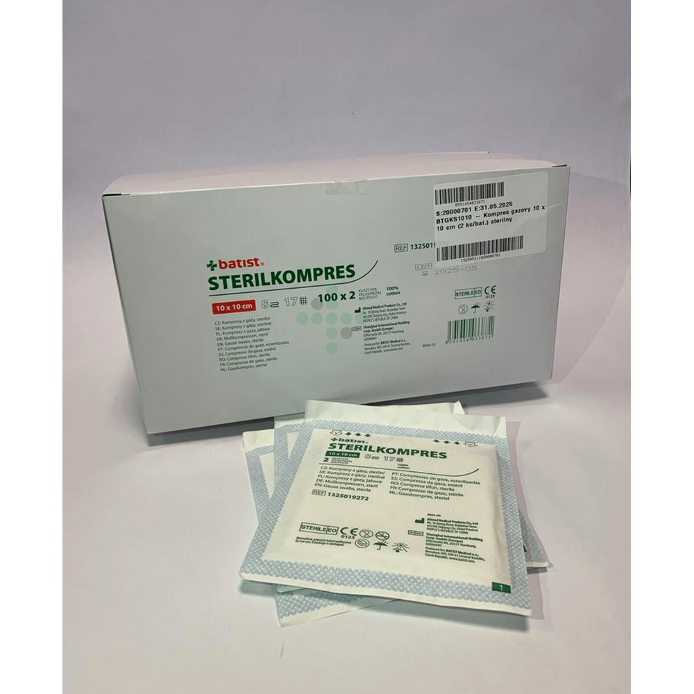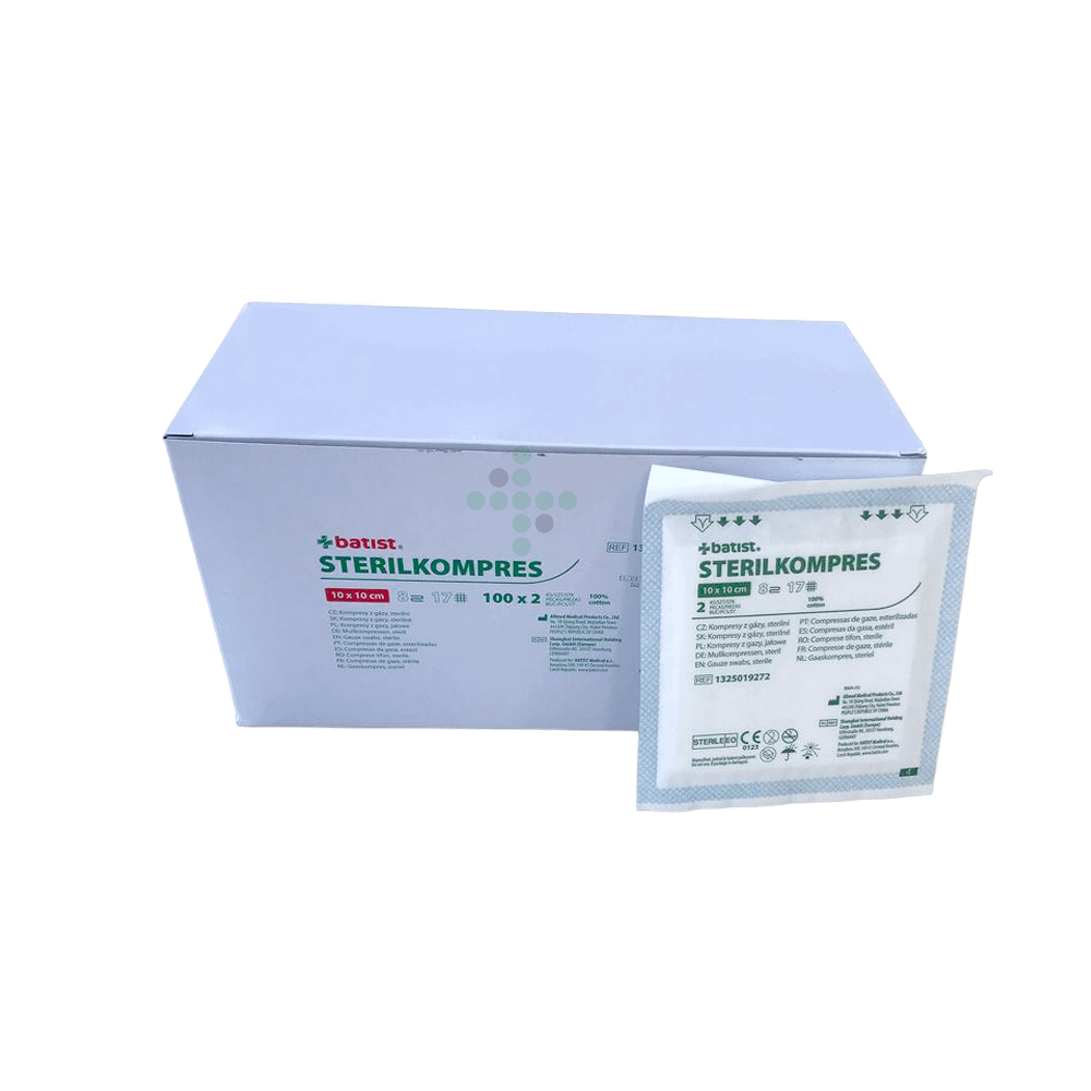Sterilní gázové kompresní polštářky jsou vyrobeny ze 100% bavlny, bělené, tkané v poměru 17 vláken/cm2. Gáza se dále skládá do tvaru obkladů. Kompresy jsou sterilní a neodmyslitelně patří k mnoha lékařským zákrokům v chirurgii, traumatologii a dalších lékařských oborech. Sterilní sáčky jsou osmivrstvé a balené po různých počtech kusů ve sterilním sáčku. Mají dobrou savost, jsou měkké a prodyšné.