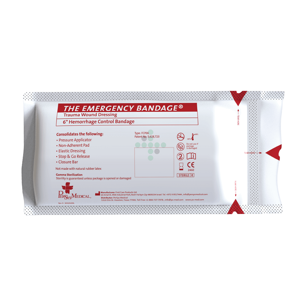 Izraelský obvaz FCP06, 6″ je tlakový obvaz vhodný nejen ke krytí ran, ale také k okamžitému zastavení masivního krvácení při úrazu. Okamžitá kontrola ztráty krve u široké škály poranění.