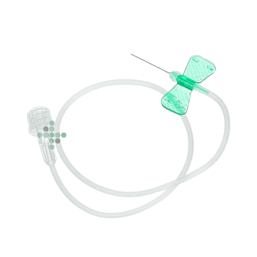 Křídlová jehla určená pro kratší dobu infuze nebo pro použití u dětí. Motýlková jehla je vyrobena z chirurgické nerezové oceli o délce 19 mm a plastové hadičky o délce 300 mm.