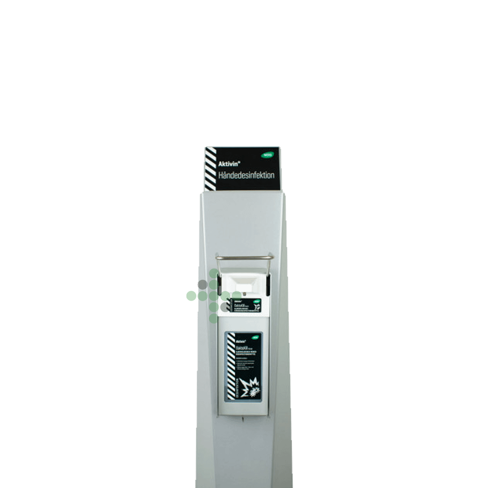 Pevný kovový stojan pro dávkovač dezinfekce.