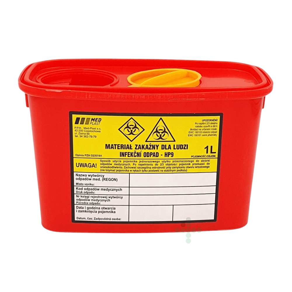 Nádoba na kontaminovaný odpad o objemu 1,0 l je určena k jednorázovému použití pro sběr nebezpečného zdravotnického odpadu v místě vzniku.