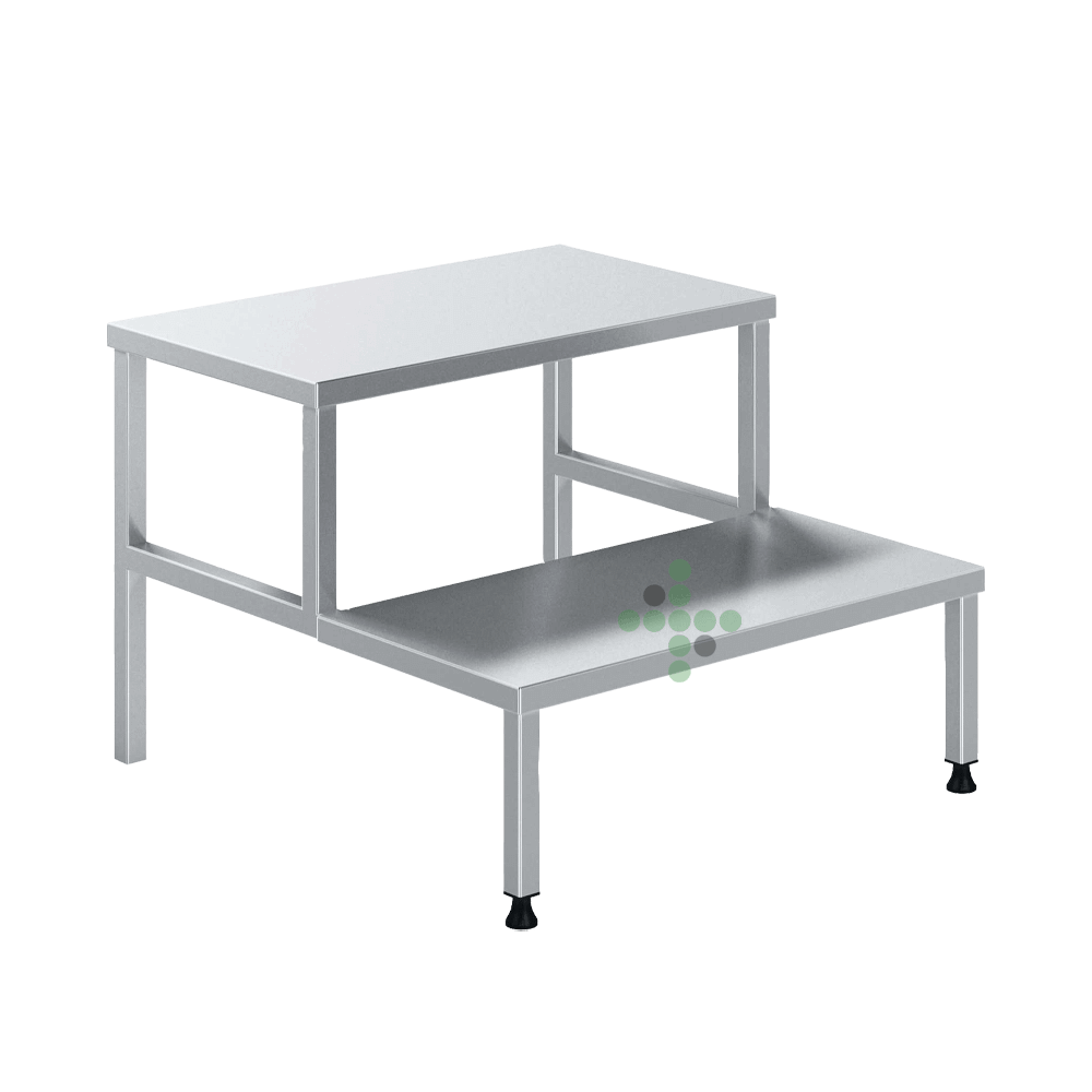 Dvojitý schod pro operační sály je vyroben ze čtvercové trubky 25×25 mm z nerezové oceli AISI 304.