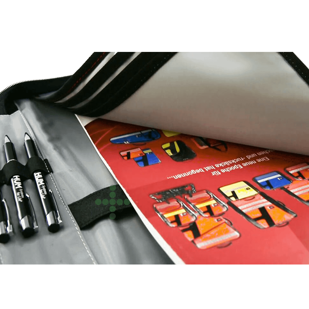 Organizér - kufřík DIN A4 s velkým počtem přihrádek pro přehledné uspořádání formulářů, dokumentů, psacích potřeb atd.