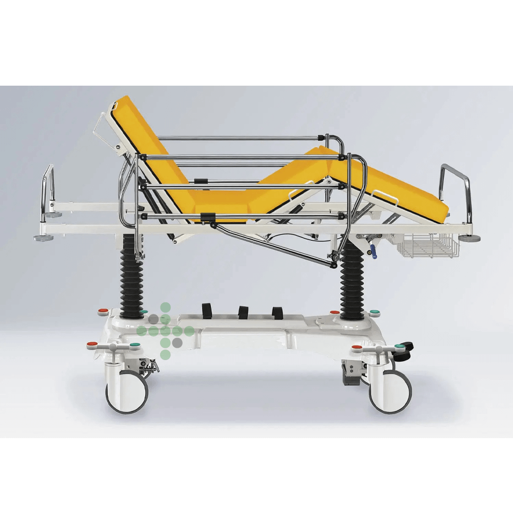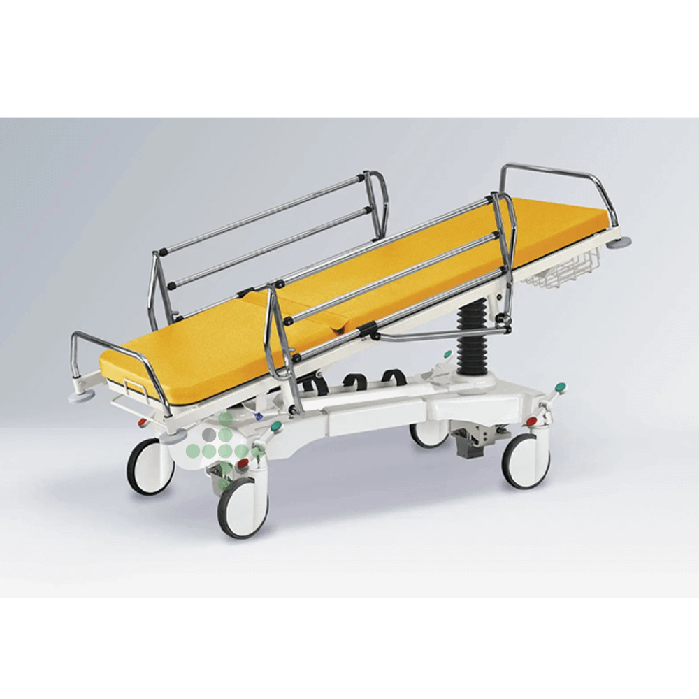 - Vybavení: odnímatelná nepropustná rentgenová matrace, čtyři centrální brzděná kola (200 mm) se směrovým kolečkem, držák kyslíkové láhve.