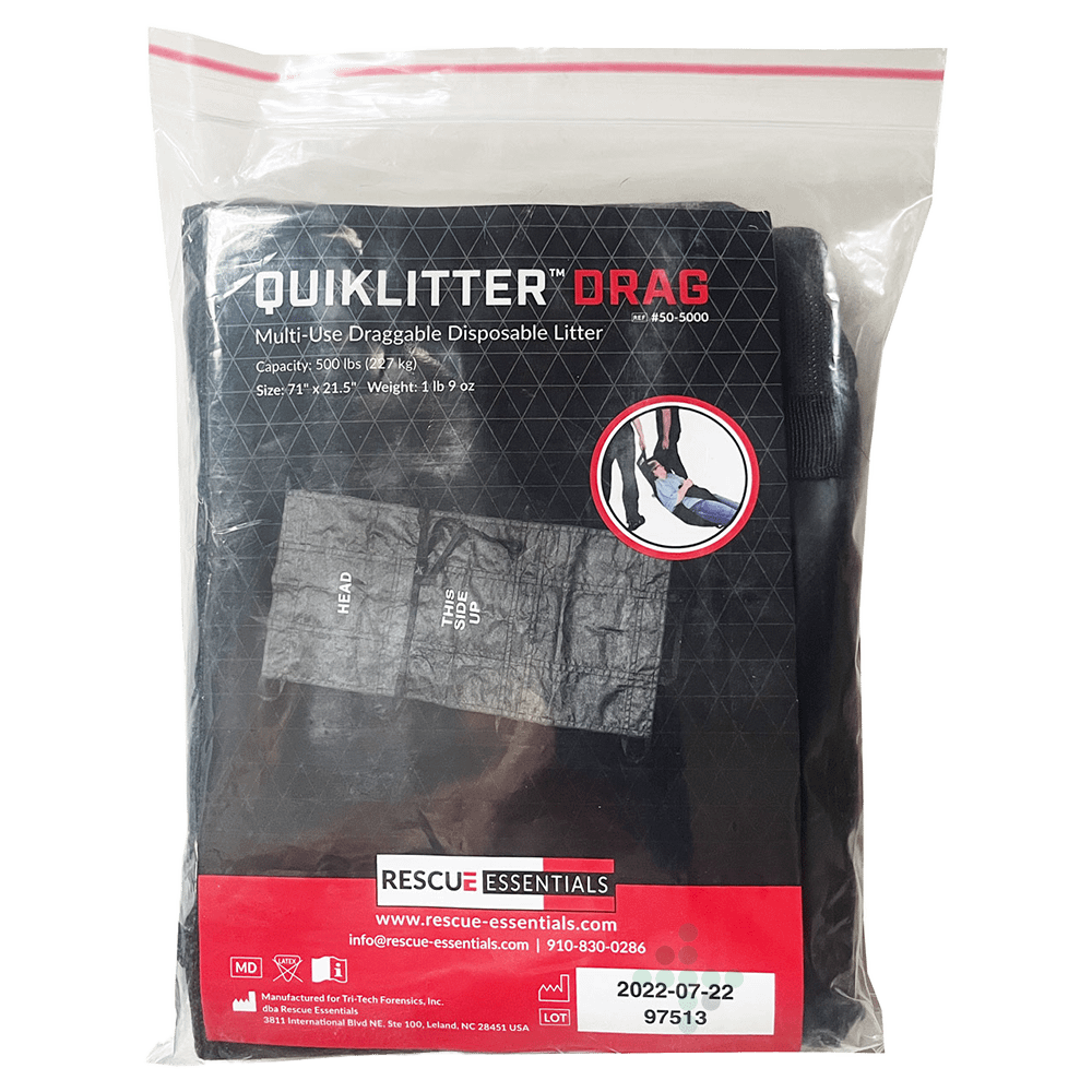 Nosítko Rescue Essentials QuikLitter Drag je určeno pro přepravu pacienta o hmotnosti až 227 kg a má 10 úchytů. Je vybaven 10 robustními rukojeťmi, které slouží k držení pacienta. Kovová spona a popruh ve tvaru kobry zajišťují bezpečný transport a přenos zraněných osob. Je užitečný zejména tam, kde je nutná rychlá evakuace.