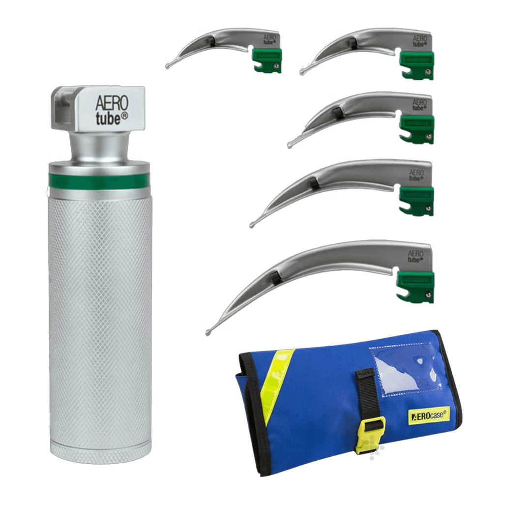 Laryngoskopická sada - rukojeť o průměru 32 mm, 5 čepelí MaCINTOSH + přepravní taška.