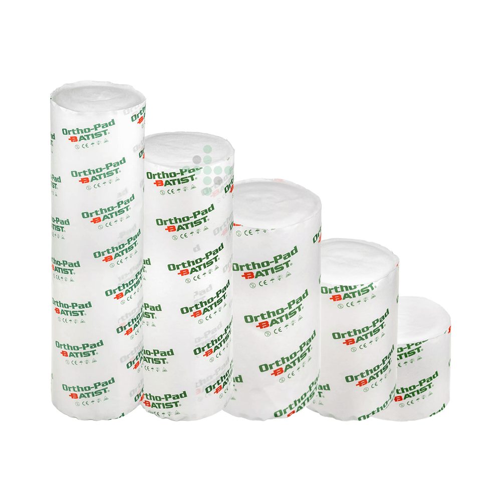 ORTHO-PAD obvaz pod sádrový obvaz délka 3 m, různé šířky - šířka je volitelná. Obinadlo Ortho-Pad je vyrobeno ze syntetické vaty, nesavého celulózového polyesteru, s mírnou elasticitou v podélném i příčném směru. Obvaz je měkký, příjemný na dotek s tloušťkou vrstvy 1,5-2 mm.