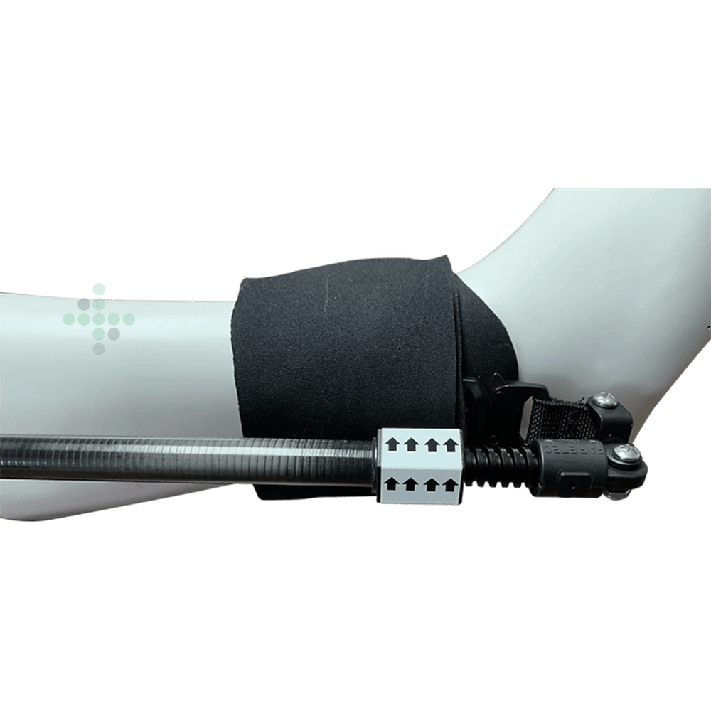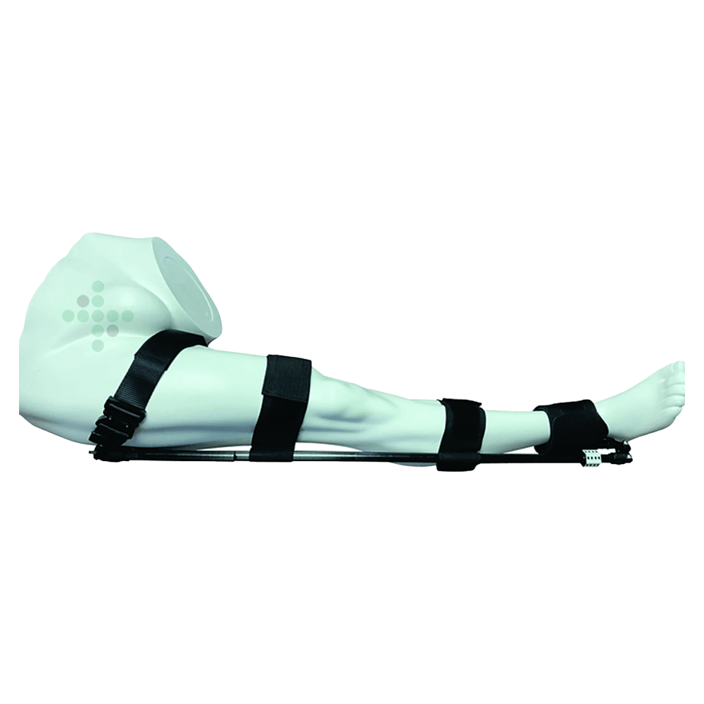 - Opěrná tyč nepřesahuje nohu pacienta – nastavitelná.