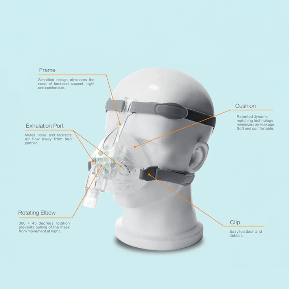 Celoobličejová maskaFM-003-TM je maska pro fanoušky. Originální výrobky Rescomf jsou inteligentně a moderně navrženy tak, aby je uživatelé mohli pohodlně používat během léčebného procesu. Unikátní konstrukce obličeje eliminuje obvyklé kroky nastavení. Koleno otočné o 360°+45° umožňuje volný pohyb. z materiálu pro lékařské účely - zdravotně nezávadné. Poskytuje maximální pohodlí, těsnost a minimální únik vzduchu.