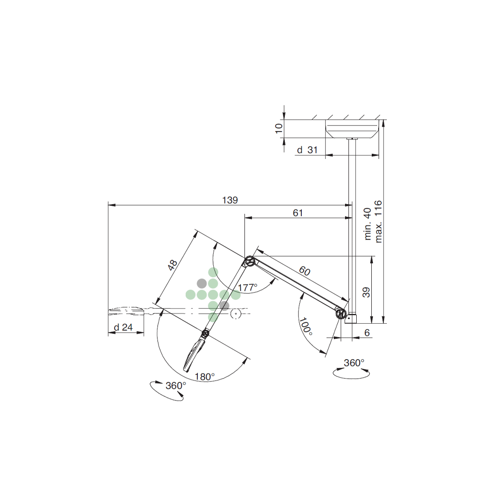 Montáž na strop, stropní trubku lze na místě odříznout. (délka: 40-116 cm)