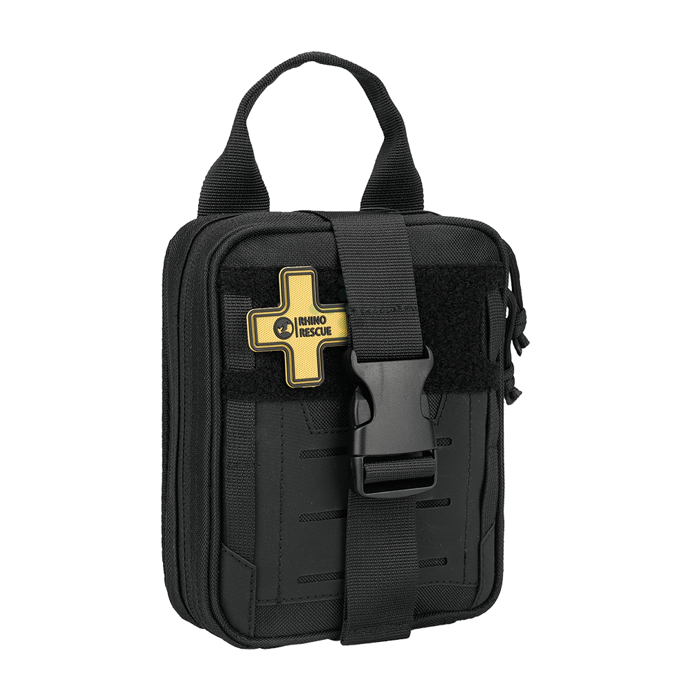 Rhino Rescue FIRST AID KID CMS IFAK MINI je malá, ale plně vybavená a praktická lékárnička (IFAK) připravená k okamžitému použití. Díky malým rozměrům a mimořádné kompaktnosti ji můžete snadno nosit na opasku, vestě nebo batohu, vždy na dosah ruky.