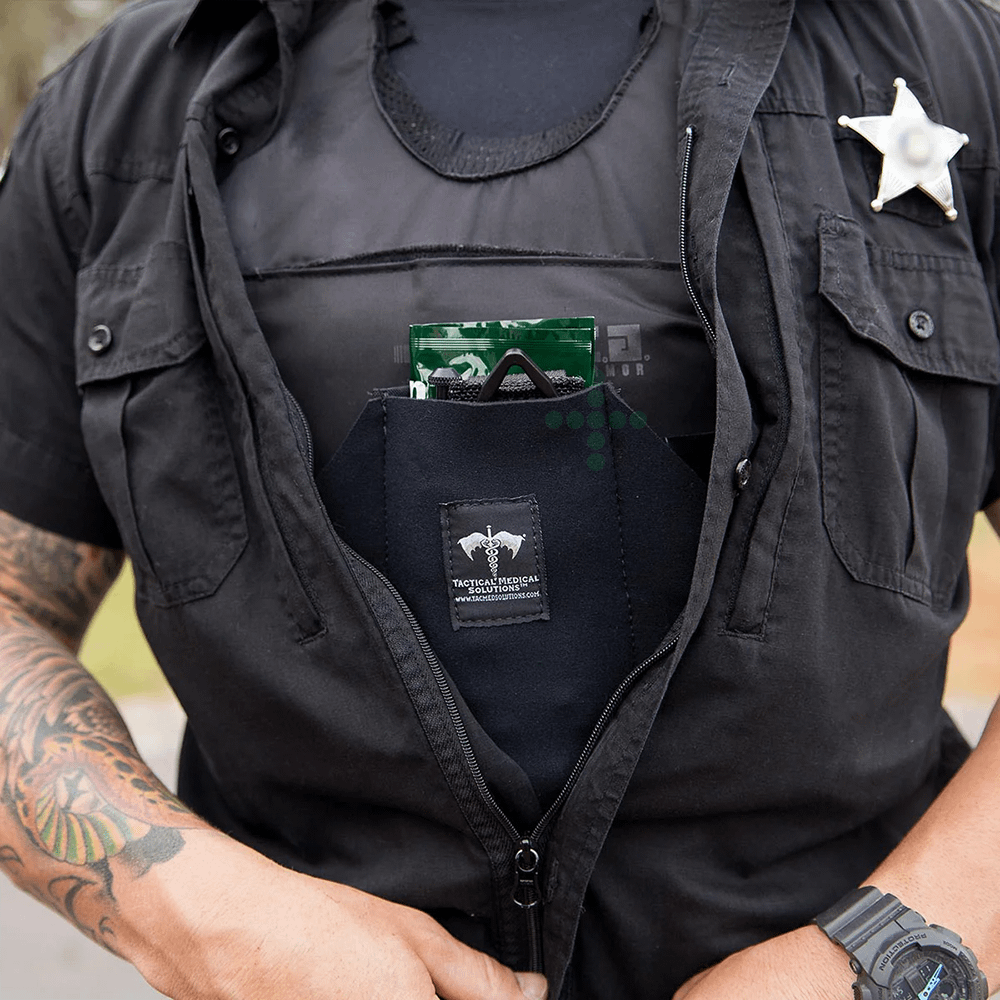 TacMed™ Medical Oficiální taktická lékárnička TacMed™ 2. GENERACE. Představuje inovativní řešení který umožňuje nosit kompletní zdravotnické vybavení diskrétně pod služební košilí. Oproti první generaci má nižší profil, lépe se přizpůsobuje tvaru vesty a je vyrobena z odolného, pružného materiálu.