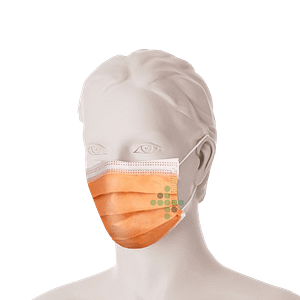 Typ II.Třívrstvá chirurgická maska s gumovými pásky.