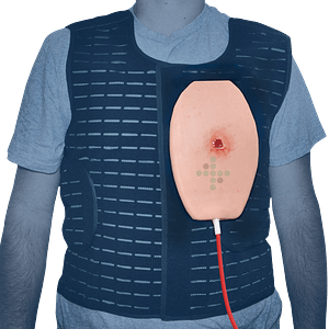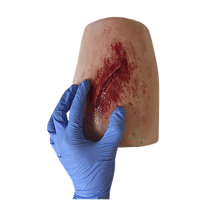 Realistické zranění hrudníku pro tréninkové účely.
