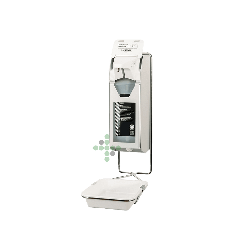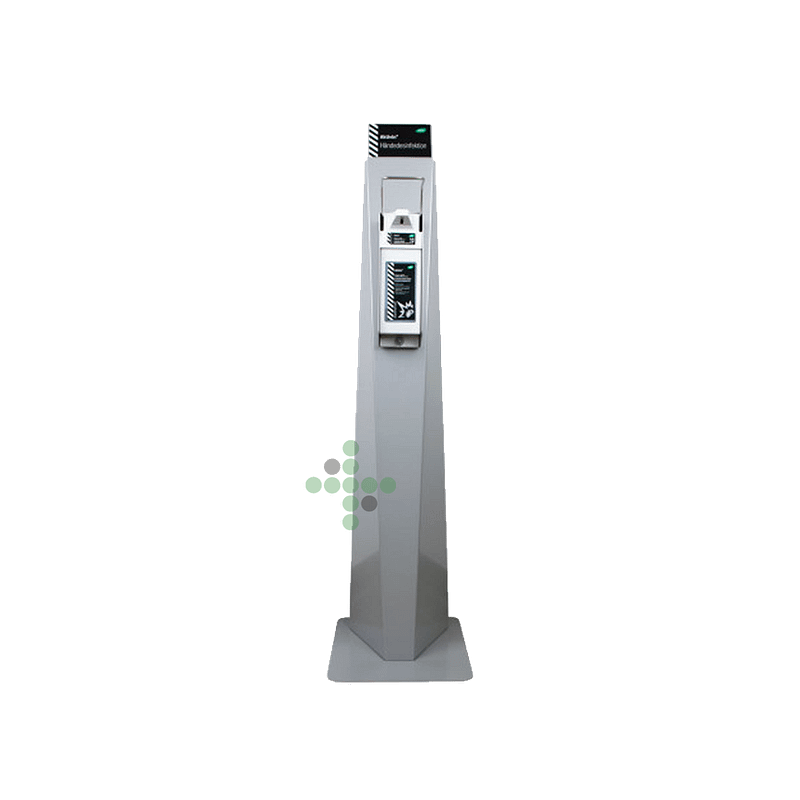 Pevný kovový stojan pro dávkovač dezinfekce.